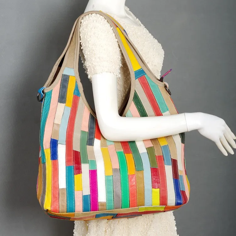 กระเป๋าสะพายไหล่ข้างเดียวลายสีชั้นแรกสไตล์ลำลอง